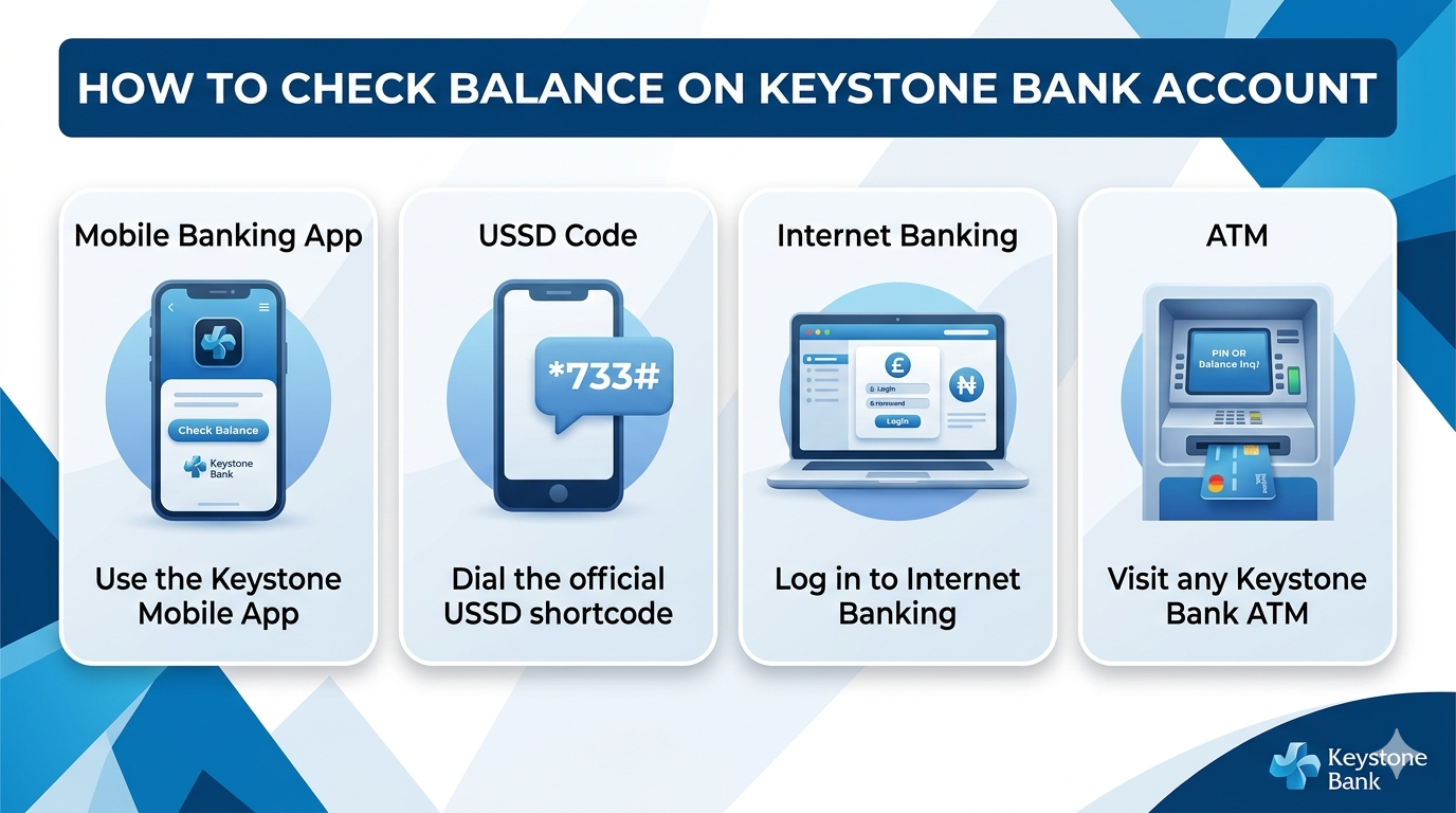To check the balance on your Keystone Bank account, you can follow these steps: